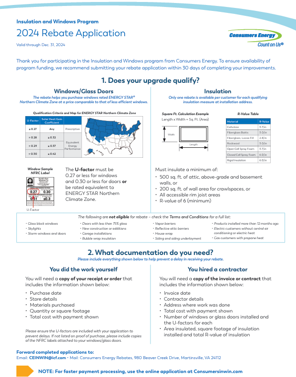 Have a digital copy* of your ENERGY STAR® or NFRC certification showing U-factor for window and patio door rebates.
